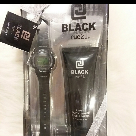 Mens gift set with watch and body wash/shampoo. Extra batteries included.