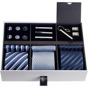 Men’s Gift Tie Set Silky Necktie Pocket Squares Tie Clips Cufflinks For Men