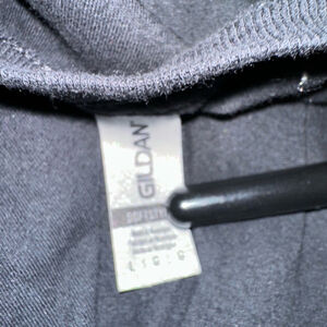 Pre-owned Gildan brand t-shirt. Black, short-sleeved, with a graphic design on the front depicting the word "IRELAND" above a stylized Irish flag incorporating a Celtic knot. The back features a faded US flag graphic and "SEMPER FI." The shirt shows some signs of wear. The material is cotton. Approximate dimensions are not provided.
