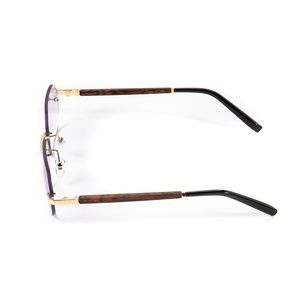 Men's Gold Frame Rimless Purple Tint Woodgrain Sunglasses