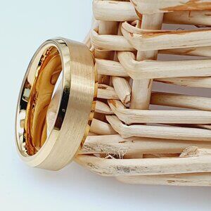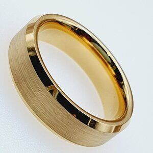 "Men's Gold Wedding Ring, Brushed and Polished Ring, GALTUN747- 8.5