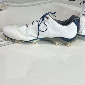 FJ men’s golf shoes, size 12. I did wash these so please note stains and scuff and wear. Might be a good pair for beginner golf belong to my son and he got a new pair.