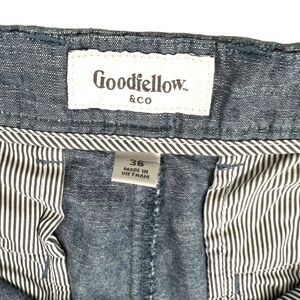 Men’s Goodfellow & Co Blue 10.5” Inseam Linden Shorts. Size 36. Two pockets on side and two in the back. Measurements are in pics, however additional measurements available upon request.