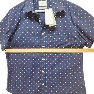 Mens Goodfellow Co Navy Star Printed Short Sleeve Button-Up Shirt Slim Fit SZ L