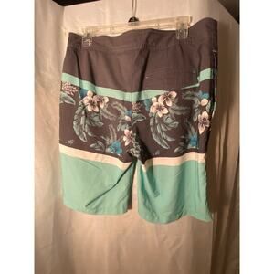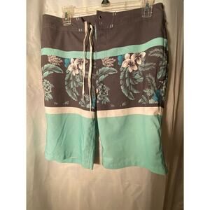 Mens Goodfellow and Co. Swim Bathing Trunks, 33 waist, Hawaiian Floral Aqua Gray