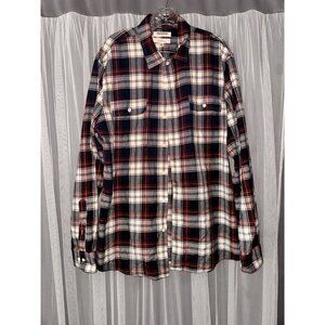 Mens Goodthreads Slim Fit Twill Plaid Button-Down Shirt XL Red & Navy