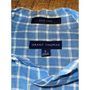 Mens Grant Thomas Pure Linen Light Blue White Checker Print Button Down Shirt S