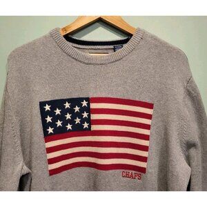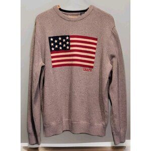 Mens Gray American Flag Patriotic Crewneck Sweater Chaps Sz XL