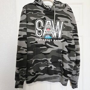 Mens Gray Camo Shark Saw Stay Above Water Hoodie Sweatshirt L