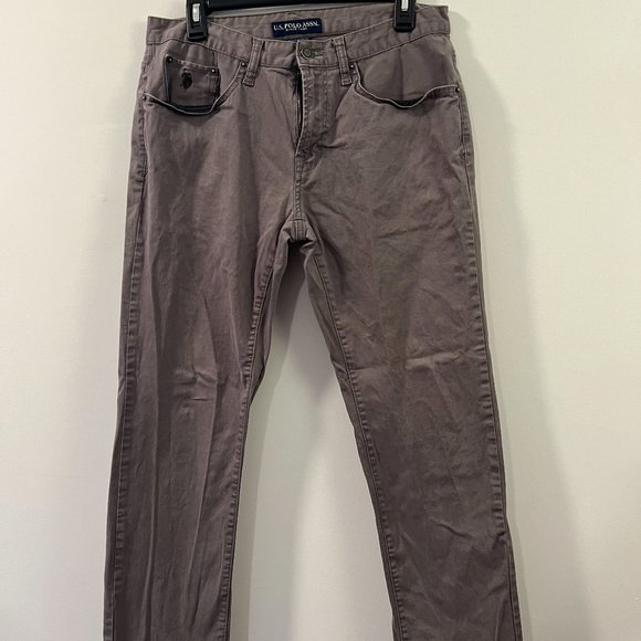 Gray chinos, skinny legs. Active stretch fit. Sorry to see these pants go; good while they fit. Size 32x30