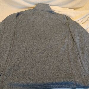 Stay warm with this gray Eddie Bauer quarter-zip sweater. Perfect for any casual outing this autumn.