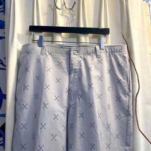 Men’s Gray Golf America Golf Club Print Polyester & Spandex Golf Shorts Size 36