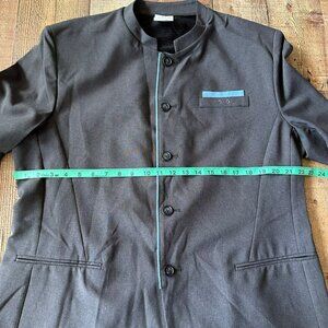 Mens Gray Mandarin Collar Blazer With Blue Trim & Button Details Size L