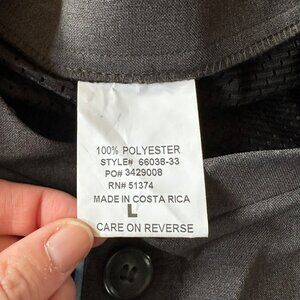 This blazer combines a modern mandarin collar design with a professional gray hue, accented by subtle blue trim. Lightweight polyester ensures comfort during wear.