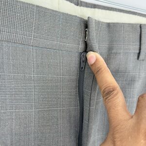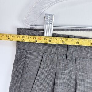 These men's gray plaid pleated cuffed wool dress pants in size 34 x 32 are versatile for casual, formal, and business occasions.