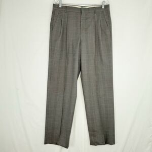 Mens Gray Plaid Pleated Cuffed Wool Dress Pants Size 34 X 32