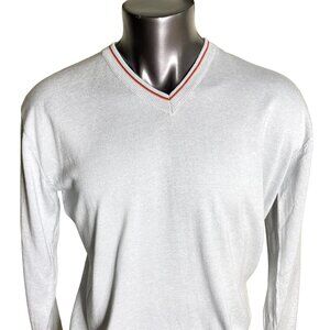 Mens Gray Sweater Pullover V Neck Preppy Y2K Shirt Size XL u