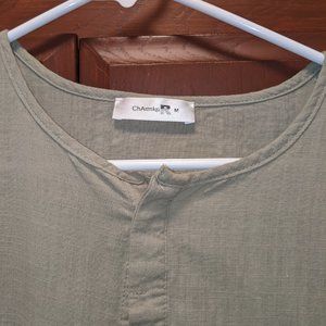 Mens chArmkpR 100% cotton green, band collar button down. (Looks more green in person that these photos show.) Has been worn once for a very short period and washed, but still like brand new.