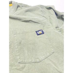 Mens Green Construction CAT Caterpillar XXL Label Pocket T-Shirt Workwear, As is