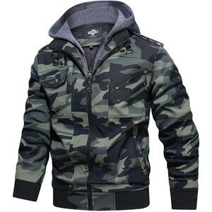 Mens Green HOOD CREW Faux Leather Motorcycle Bomber Jacket Removable Hood