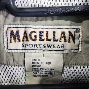 Mens Green Magellan Fishing Shirt Button Down Short Sleeve Vented Cotton Size L