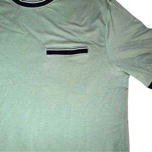 Stylish men's shirt featuring navy blue trim. Chest pocket. Perfect for casual wear.