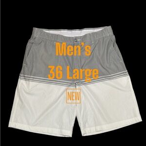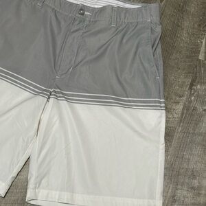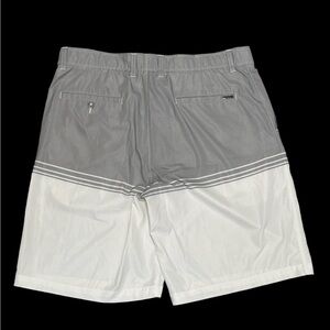 Men's Greg Norman 36 Large Chino Khakis Shorts White Gray Stretch Grip Waistband