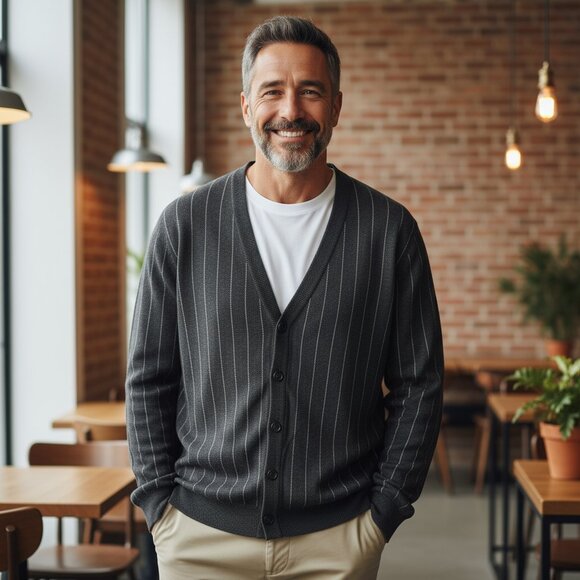 Holiday Shopping or Elevate Your Wardrobe with the Stylish Men's Greg Norman Pinstripe Cardigan Sweater in a Comfortable XXL. Perfect for adding a touch of sophistication to any outfit, this piece combines timeless pinstripe design with cozy comfort. The perfect holiday gift for your guy, dad, or granddad.