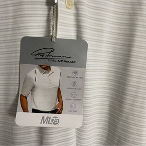 Men’s Greg Norman Grey & White Stripe Golf PlayDry Size Medium!