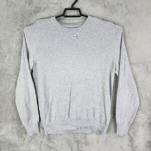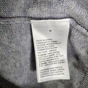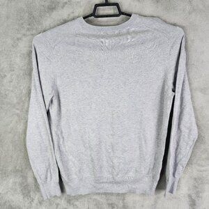 Mens Grey Buttoned Down Sweatshirt 100% Supima Cotton Long Sleeve Crew Neck M