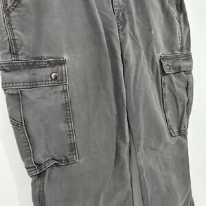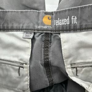 Men's Grey Carhartt Canvas Relaxed Fit Cargo Utility Workwear Pants 34x32 act (34x30.5) faded distressed