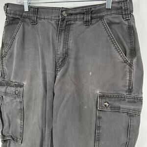 Men's Grey Carhartt Canvas Relaxed Fit Cargo Workwear Pants 34x32 act (34x30.5)