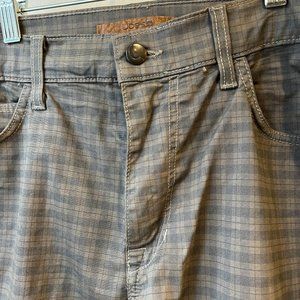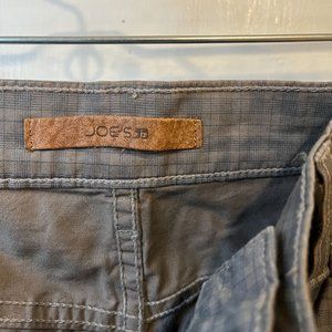 Mens grey pants by Joe, size 36. Grey with a subtle plaid pattern. Jeans style, casual, 5 pocket, belt loops, straight leg. Inseam is 30" and length is 39".