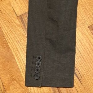 Beautiful men’s S + slim fit blazer in excellent condition. Grey colored with two buttons. Dual hand pocket and one breast pocket.