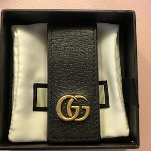 Pre-owned, gently used, monogrammed GG, Gucci Marmont Leather money clip. Comes with box and duster bag.