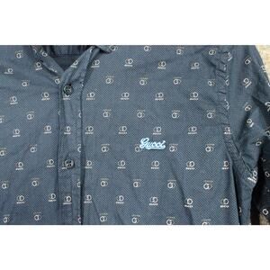 Men's Gucci Monogram button Up Long Sleeve Slim Fit Size Small Blue