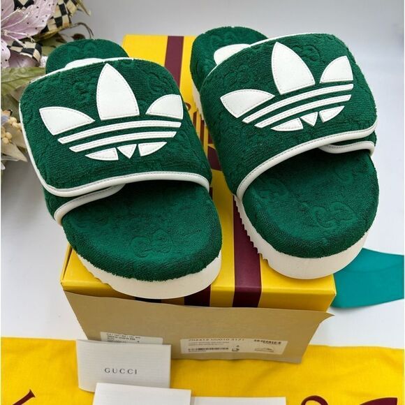 Men’s Gucci X Adidas, GG monogram, limited edition slides size 8, made i…