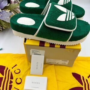 Men’s Gucci X Adidas, limited edition, pool slides, GG monogram size 11 Italy