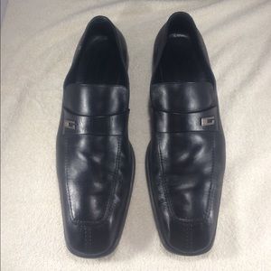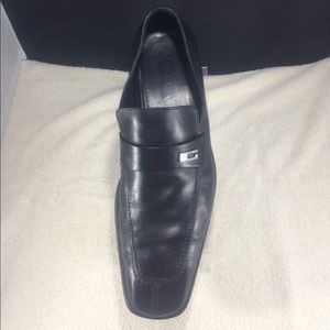 A great pair of lightly worn Gucci black slip on men's loafers. Made in Italy! US size 12.5 D.