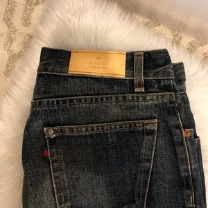 Never been worn! Just like new, Gucci jeans...button fly, dark wash, straight leg.