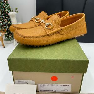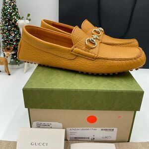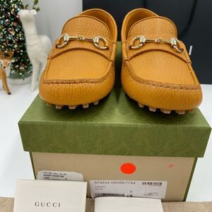 Men’s Gucci, leather horse bit driver loafers size 9 fits 10 US made in Italy