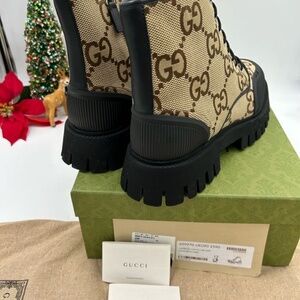 Men’s Gucci, maxi GG logo lug sole combat boots size 12 made in Italy