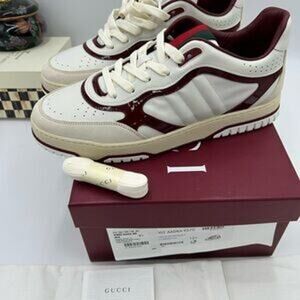 Elevate your footwear collection with these stunning men's Gucci Re-Web sneakers. Crafted in Italy from pristine white leather, these sneakers feature eye-catching red accents that add a touch of sporty elegance.