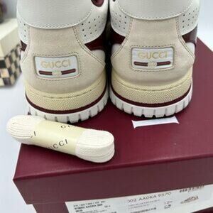Men's Gucci re-Web sneakers in white leather with red accents size 12.5 Italy