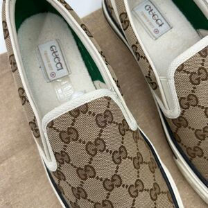 Men's Gucci GG canvas slip on sneakers size 8 fits 9 US. PRISTINE
