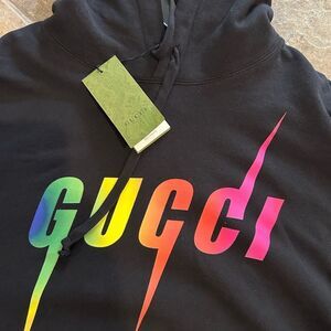 Men's Gucci blade logo print cotton hooded sweatshirt, size Xxxl made in Italy