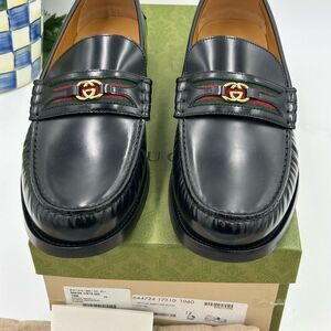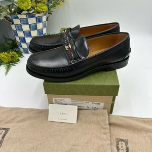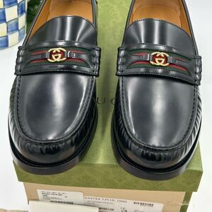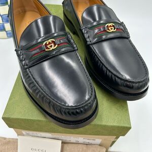 Men’s Gucci kaveh interlocking G web leather loafers size 12 made in Italy …