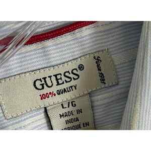 Men's Guess Long Sleeve Dress Shirt Size L Blue Striped Button Up