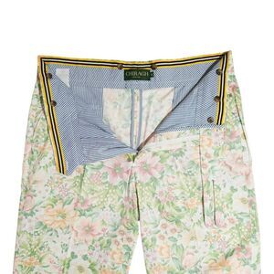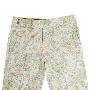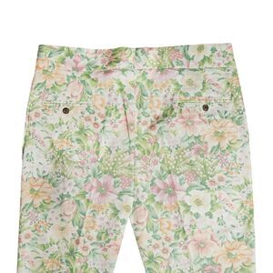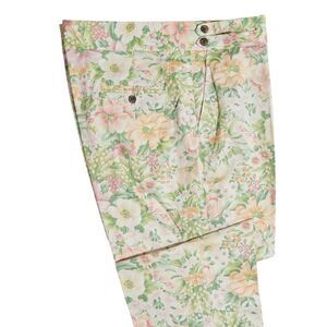 Mens Gurkha Pants 38 Green Pink Orange Floral Trousers Straight Fit Flat Front