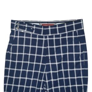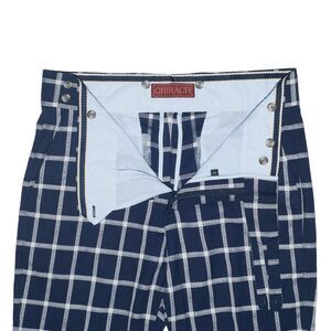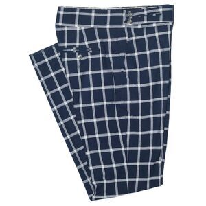 Mens Gurkha Pants Blue White Check Wool Slim Straight High Waist Flat Front 34